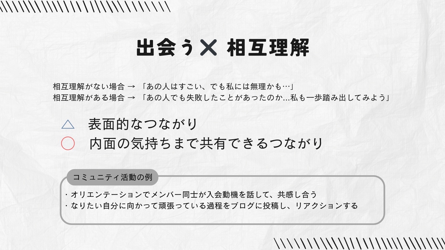 他の人から刺激を受けるために大切な「出会い × 相互理解」